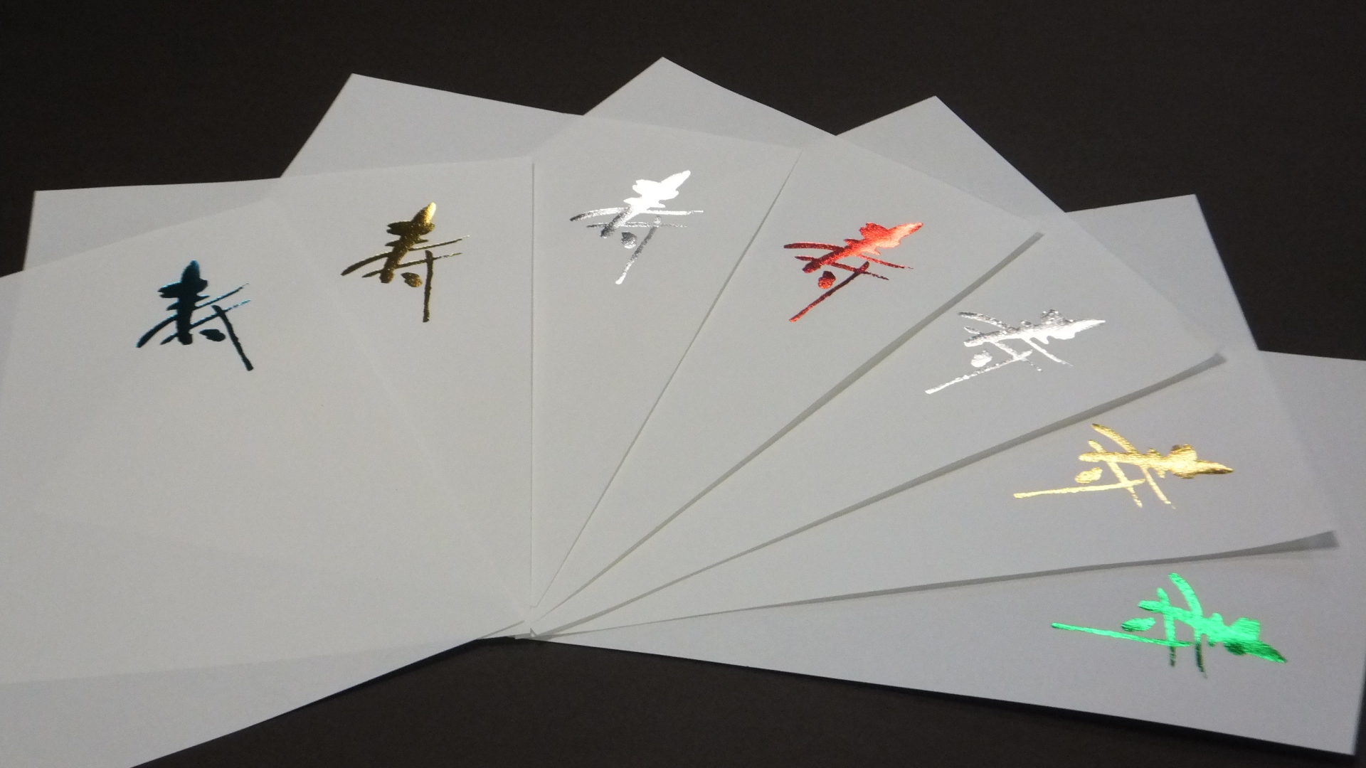 名刺のロゴマークやパンフレットのワンポイント、結婚式の招待状など様々な箔押し加工を行っております、